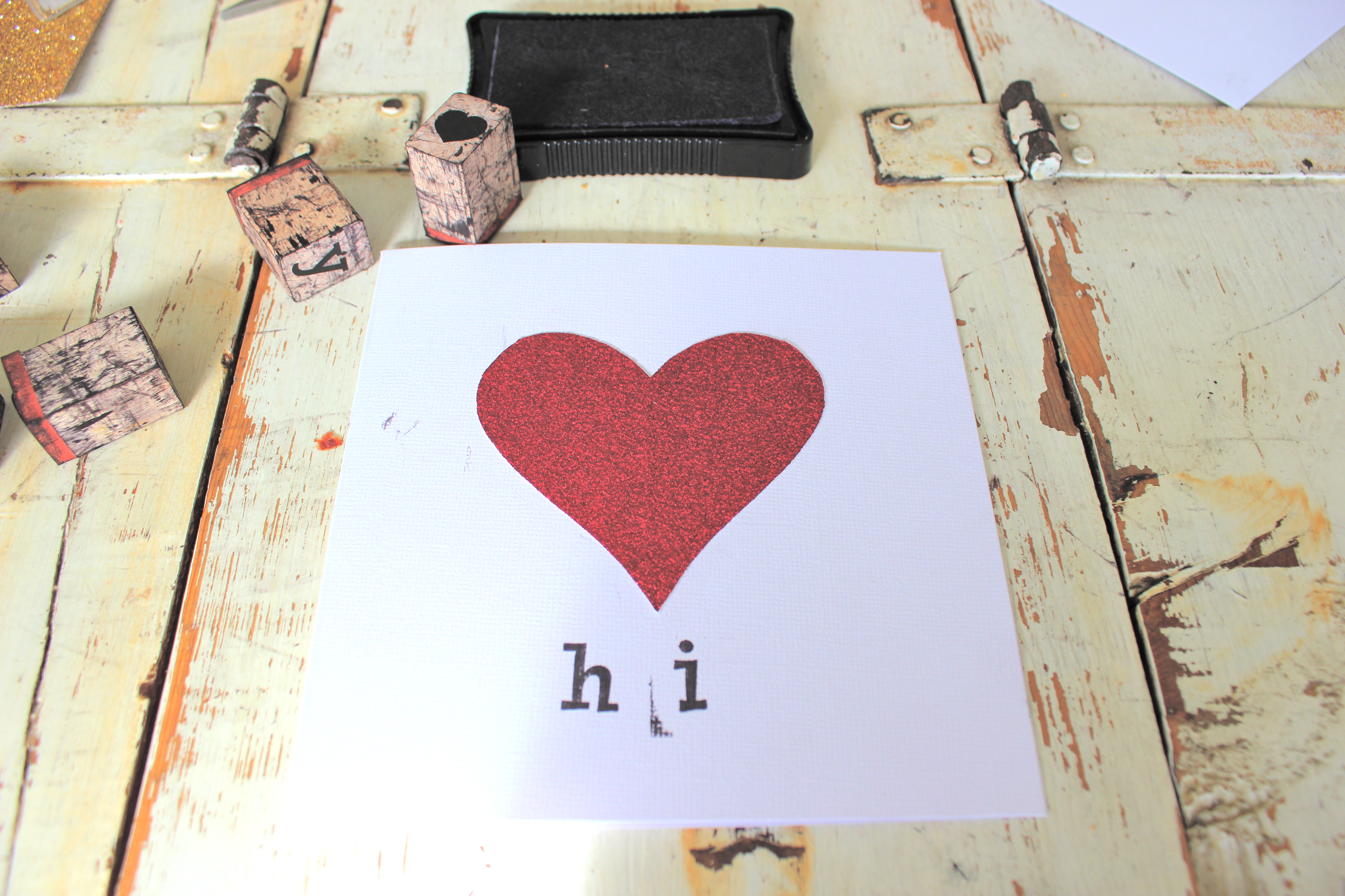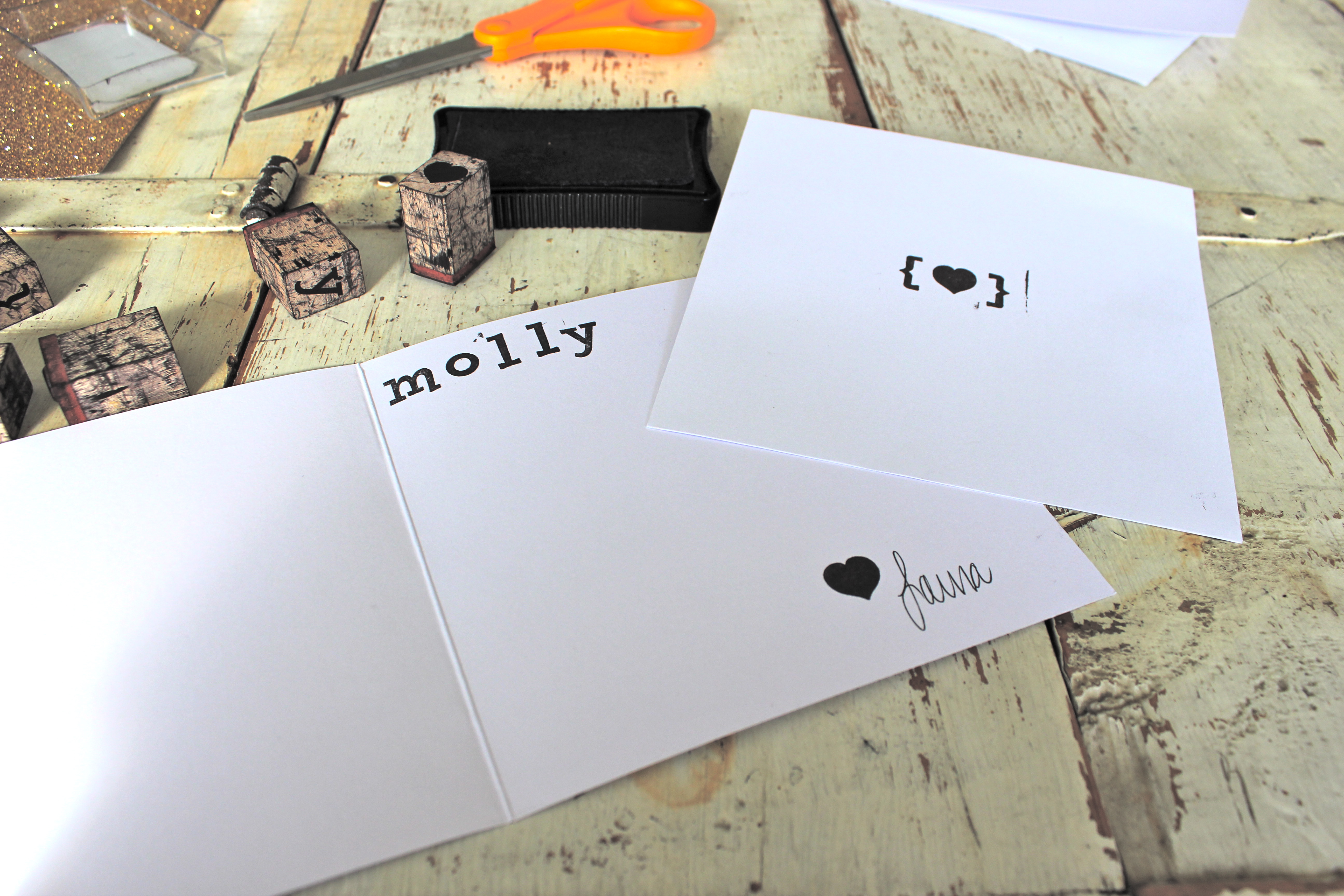 2.) Use the stamps to provide a word or a saying. On the inside of the cards, I wrote the recipient’s name with a heart down at the bottom for my sign-off.