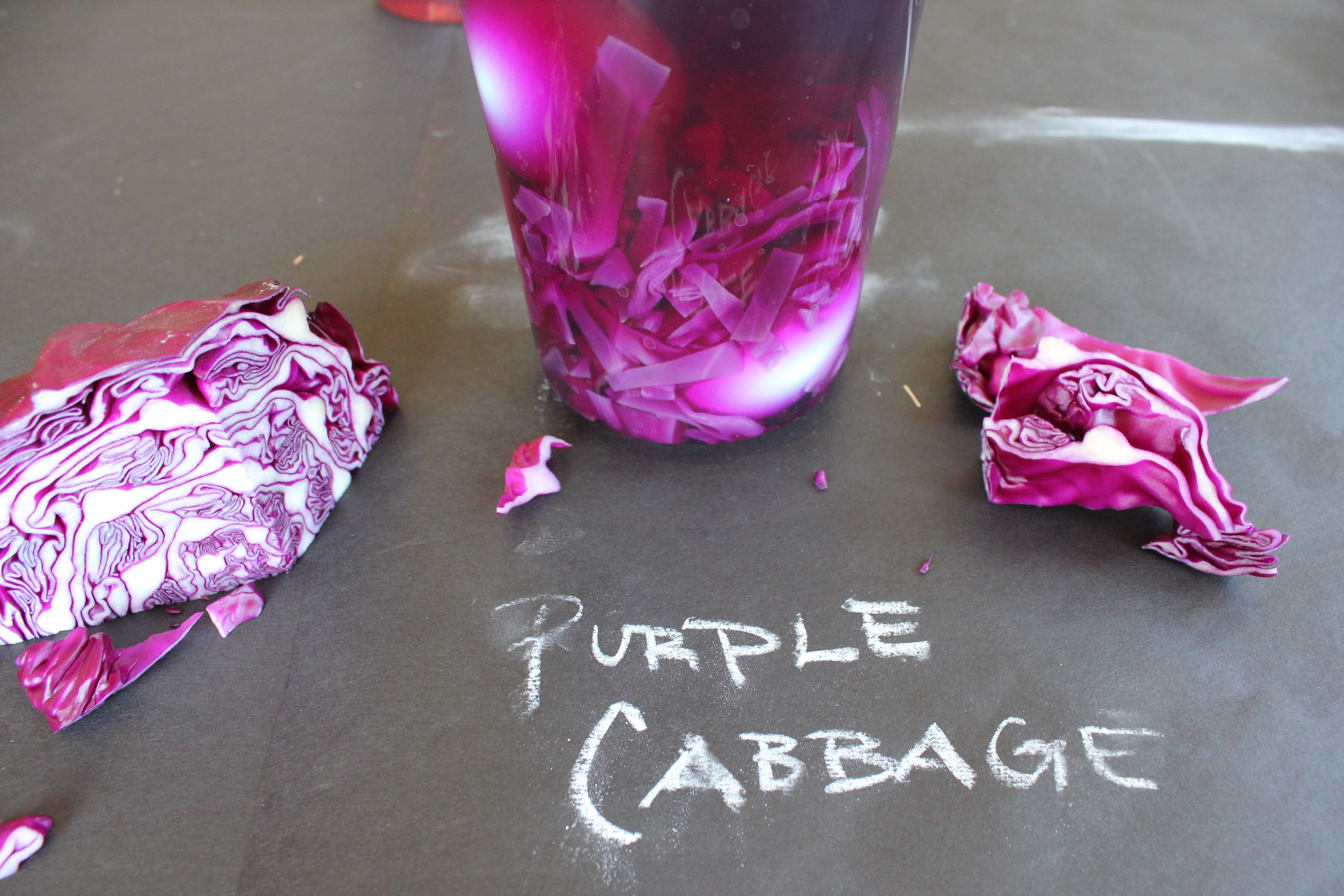 {I used 5 ingredients for dye: spinach, purple cabbage, yellow and red onion skins, and paprika}