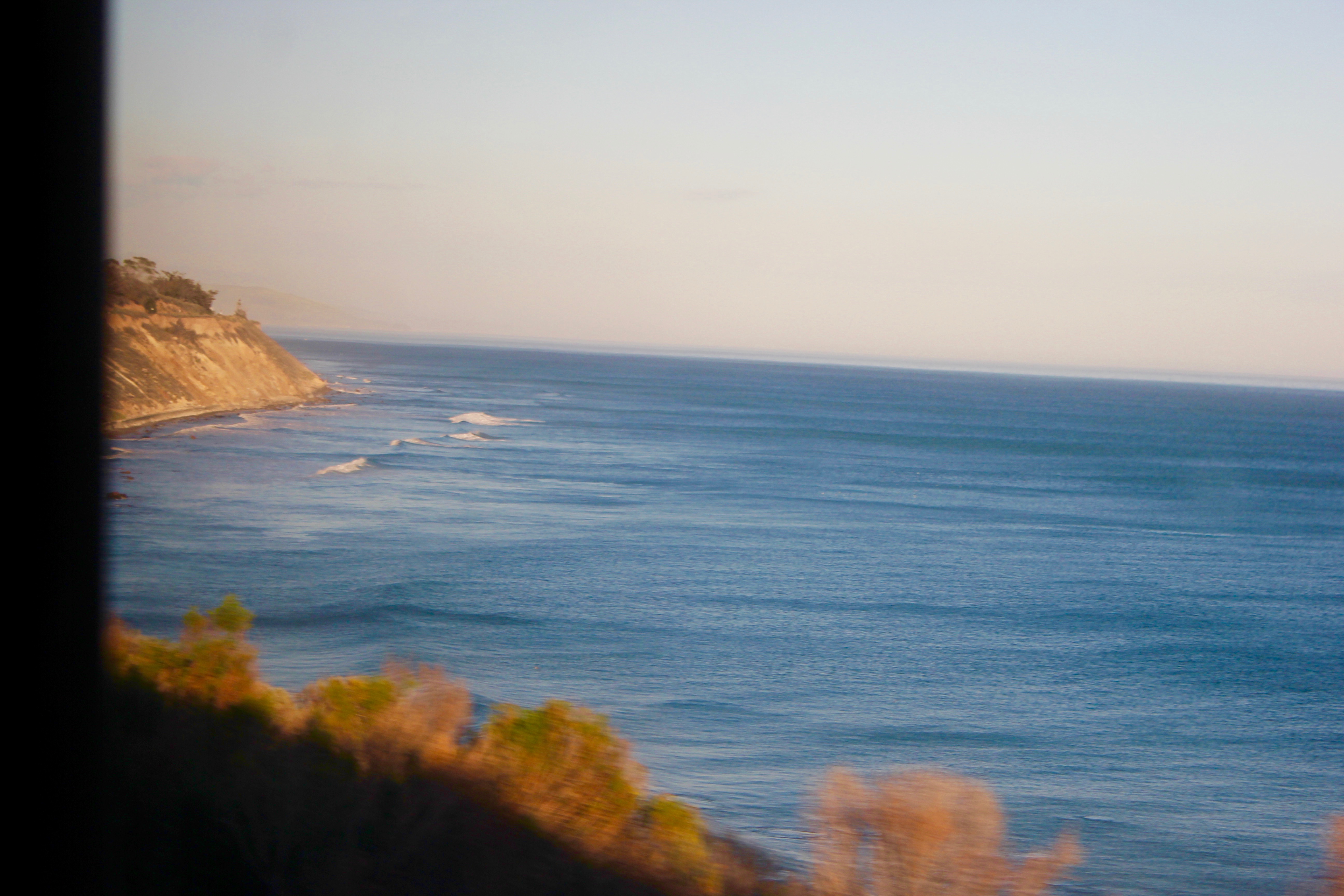Last Friday, we took a wonderful little day trip down to Santa Barbara by way of the Amtrak Surfliner. It was semi-spontaneous, a lot of fun, romantic and a well-rounded, perfect Santa Barbara day. We shopped, ate, sipped on wine at outside cafés, walked around and shopped some more. The fun thing about SB is, it is a step up from our town in size, has an increased number of restaurants and bars, not to mention crucial shopping staples like Nordstrom and Anthropologie. I was able to pack all I needed to in my perfect Hobo convertible bag, including a change of clothes and some small trip necessities. Since we left for SB at 6:30 am, I knew I wanted an outfit that was comfortable and warm for the morning train down but I would still need a comfortable yet nice, cooler, outfit for the day. I packed a Free People dress (big surprise there) and strappy sandals to change into when the weather permitted. The great thing about the train is that is lets off right in SB’s new ‘Funk Zone‘ area. There are awesome buildings, shops, tasting rooms, and much more in this little new hot spot.