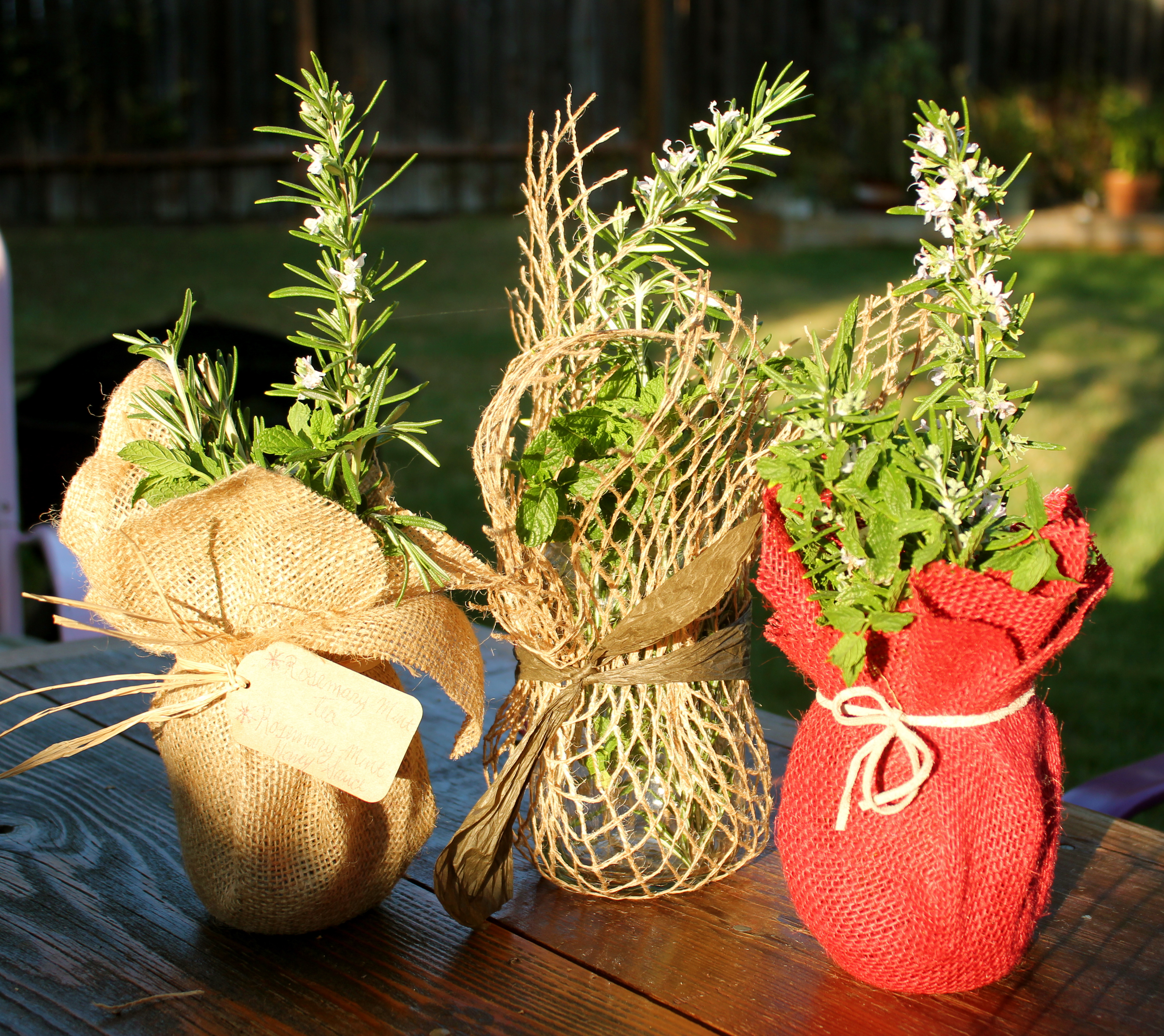 ~ Rosemary and Mint ~ Mason Jars ~ Burlap (of any color or style) ~ Ribbon/raffia/leather/or any sort of neutral colored ‘tie’ ~ Scissors ~