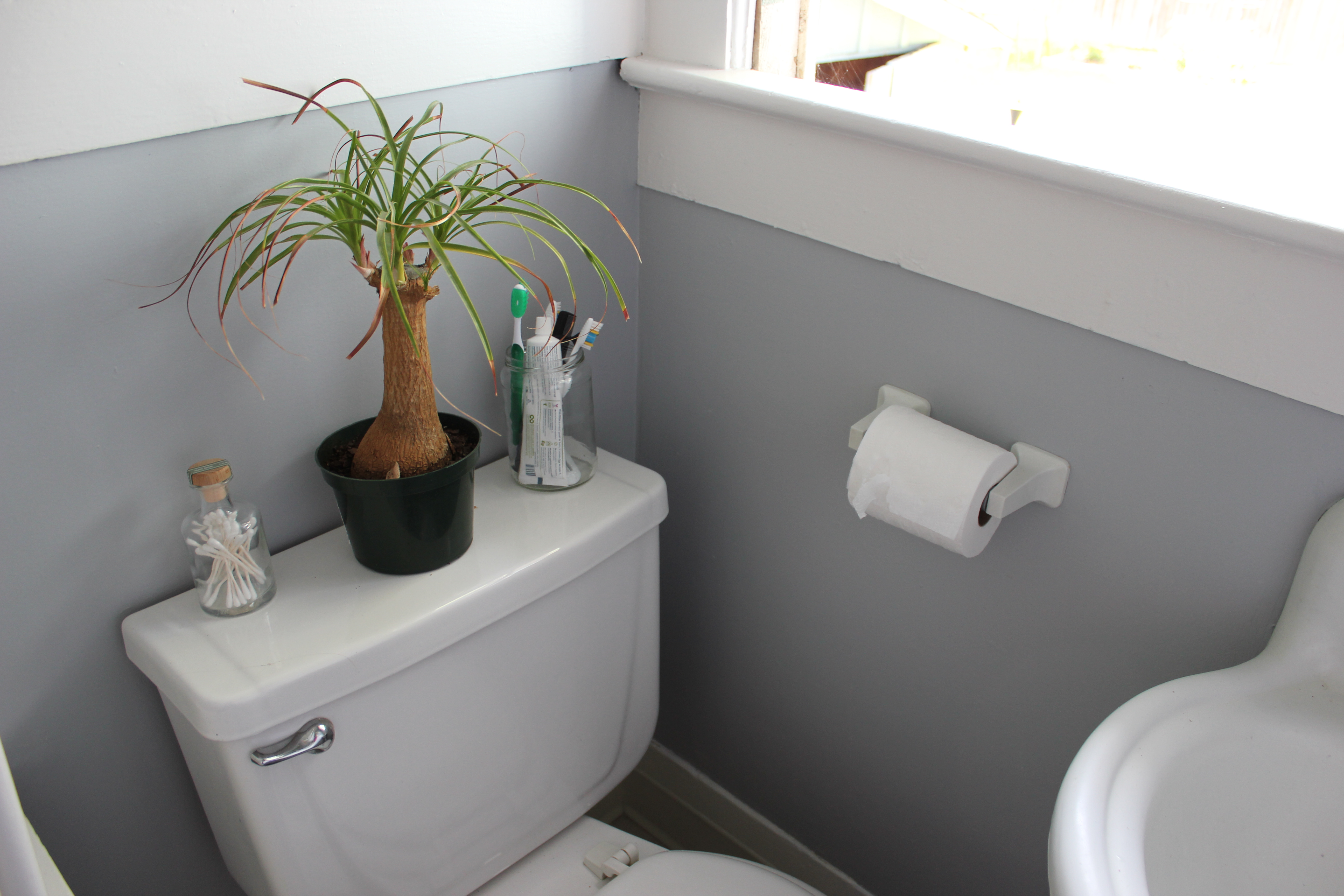 Once upon a time, I lived in the smallest, actually, most narrow bathroom that you may ever see. To clarify, I did not live in the bathroom…I lived in the house that housed the bathroom. This tiny, little, nook was in desperate desire for some TLC. Without hesitation, I thunk up an idea, bought some paint, and went to town. Of course, there was more to it than just paint…