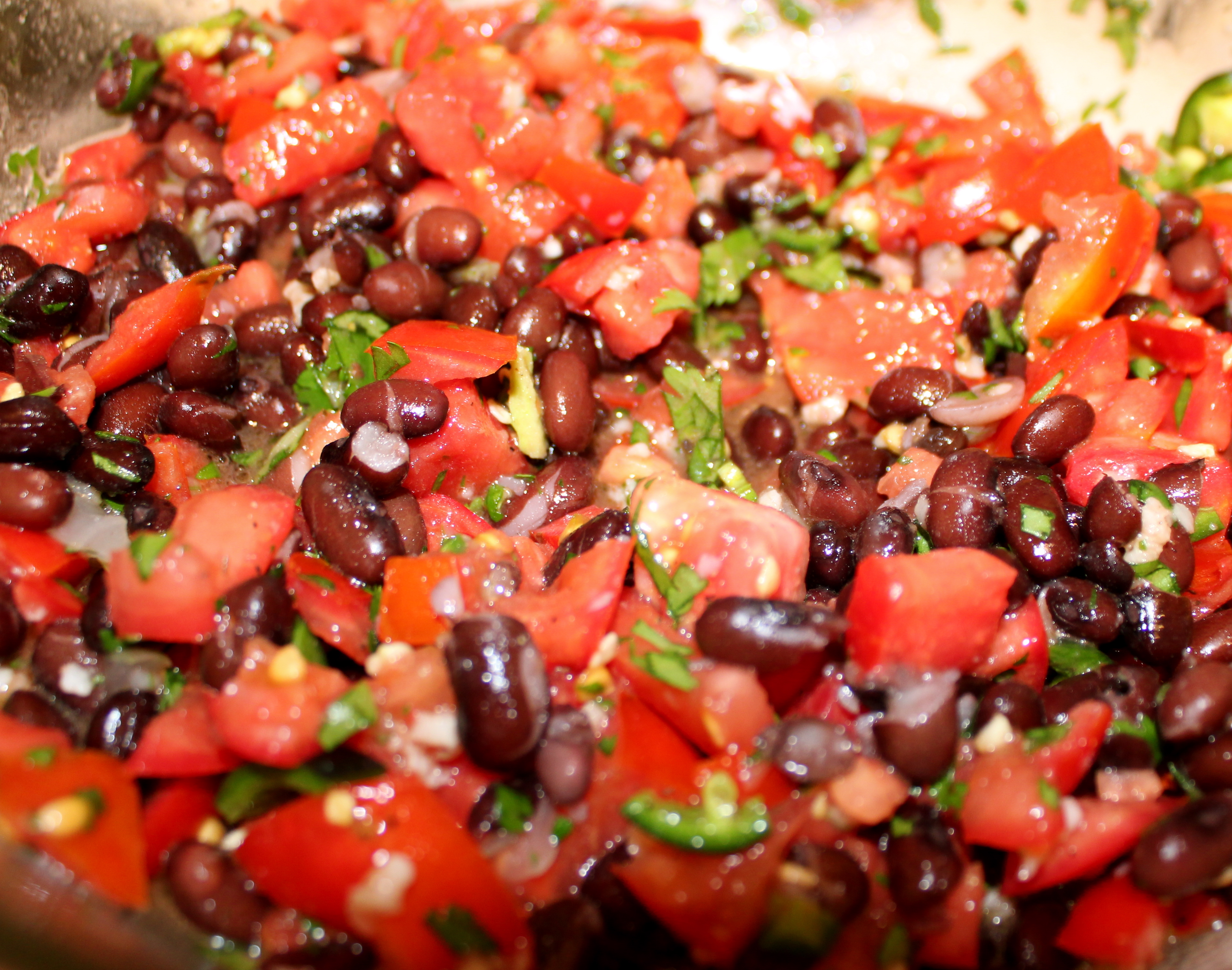 Once your beans are cooled, add them to the tomato mixture and then the garlic/onion mixture when it has cooled. Give the salsa a good stir and taste. Add salt, pepper and more lime juice as needed…everyone is different when it comes to this!