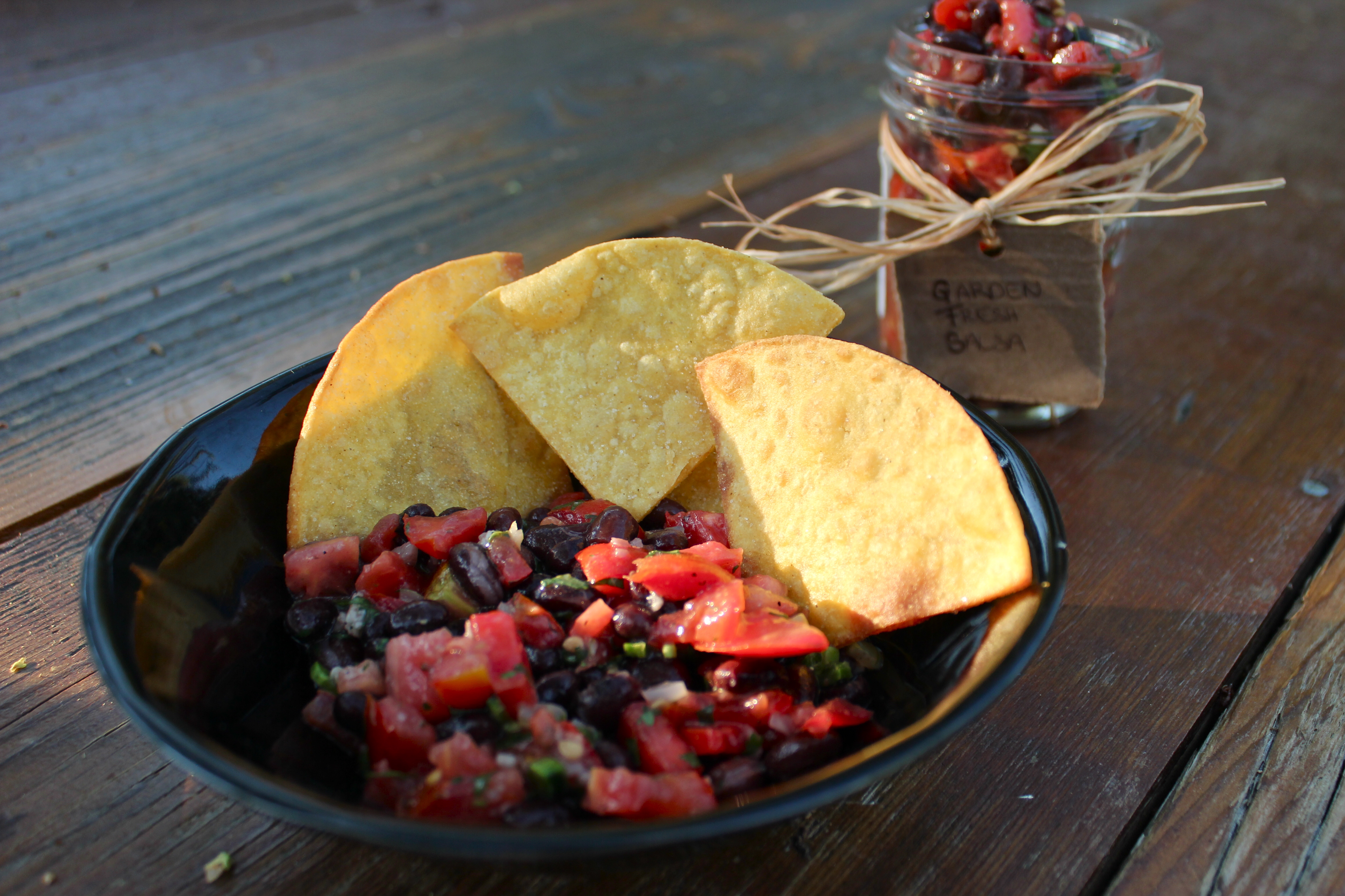 The salsa and chips make a great summer gift for friends, or are perfect for a backyard BBQ.