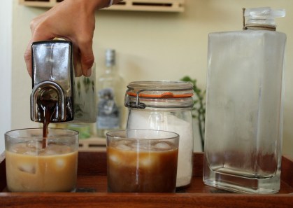 Mason Jars have been a great tool in the Iced Coffee endeavor. I pour in my coffee along with some bakers sugar and cream. Oh, and the ice, of course. Seal the lid and shake for a slightly frothy and perfectly blended iced coffee! Waking up in the morning with no coffee maintenance except to sugar and cream coffee is just delightful and cooling!