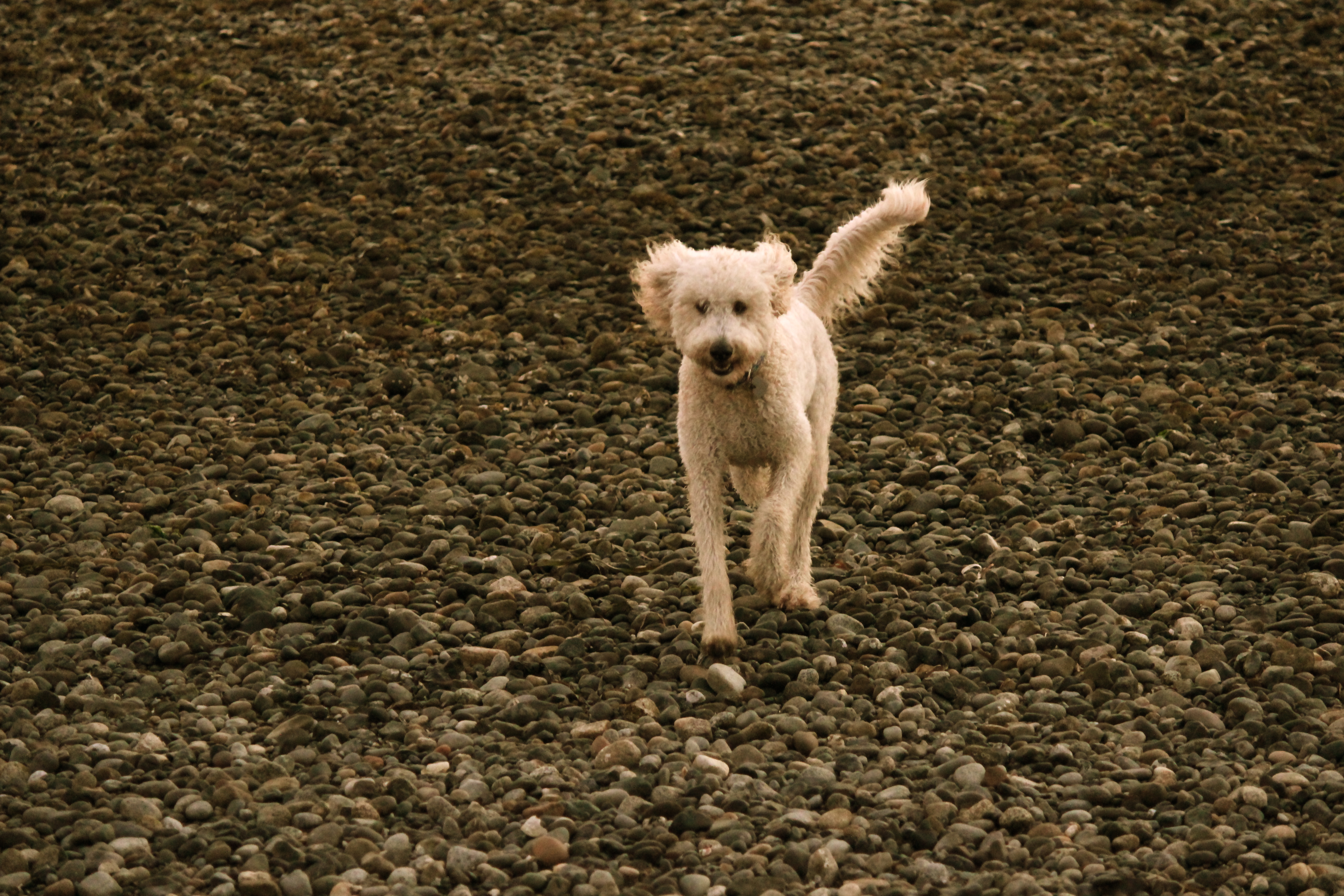 {My Aunt and Uncle’s puppy, Lilly the Labradoodle, the outside deck of their home}